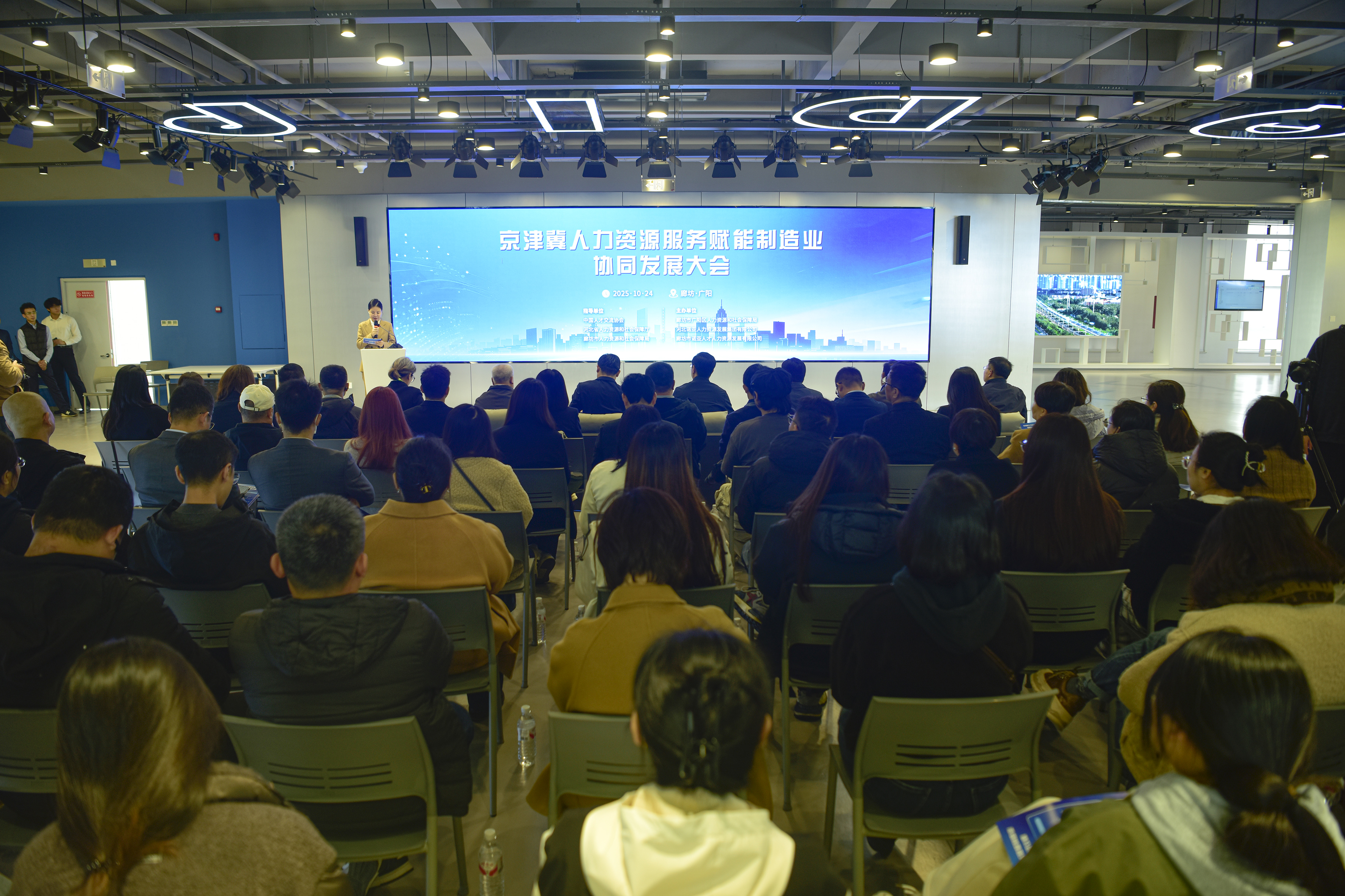 10月24日,京津冀人力資源服務(wù)賦能制造業(yè)協(xié)同發(fā)展大會(huì )在廊坊市廣陽(yáng)區成功舉辦,大會(huì )匯聚了各地政府代表、行業(yè)專(zhuān)家、人力資源服務(wù)機構及企業(yè)負責人等近百名嘉賓,共同探索人力資源服務(wù)與制造業(yè)深度融合的新路徑,為區域協(xié)同發(fā)展注入新動(dòng)能。